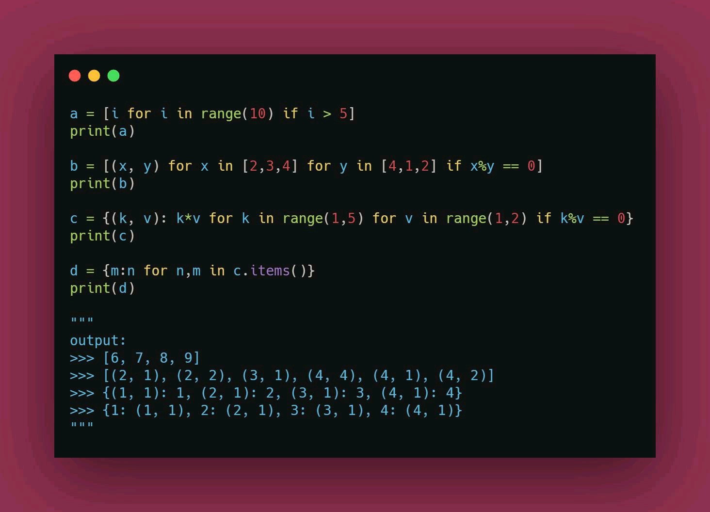 List and Dictionary Comprehension are a more elegant and Pythonic way to do the same process.